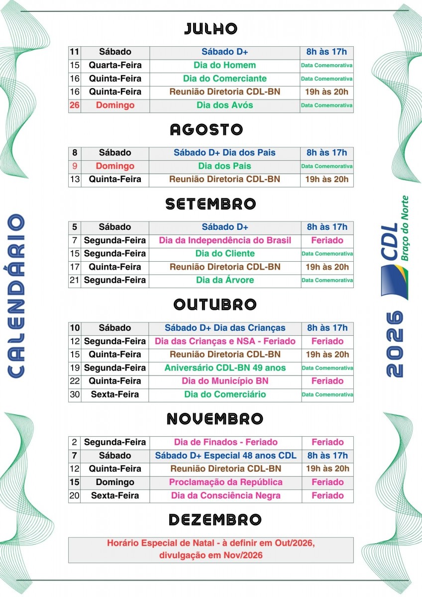 Pré Calendário CDL-BN 2024